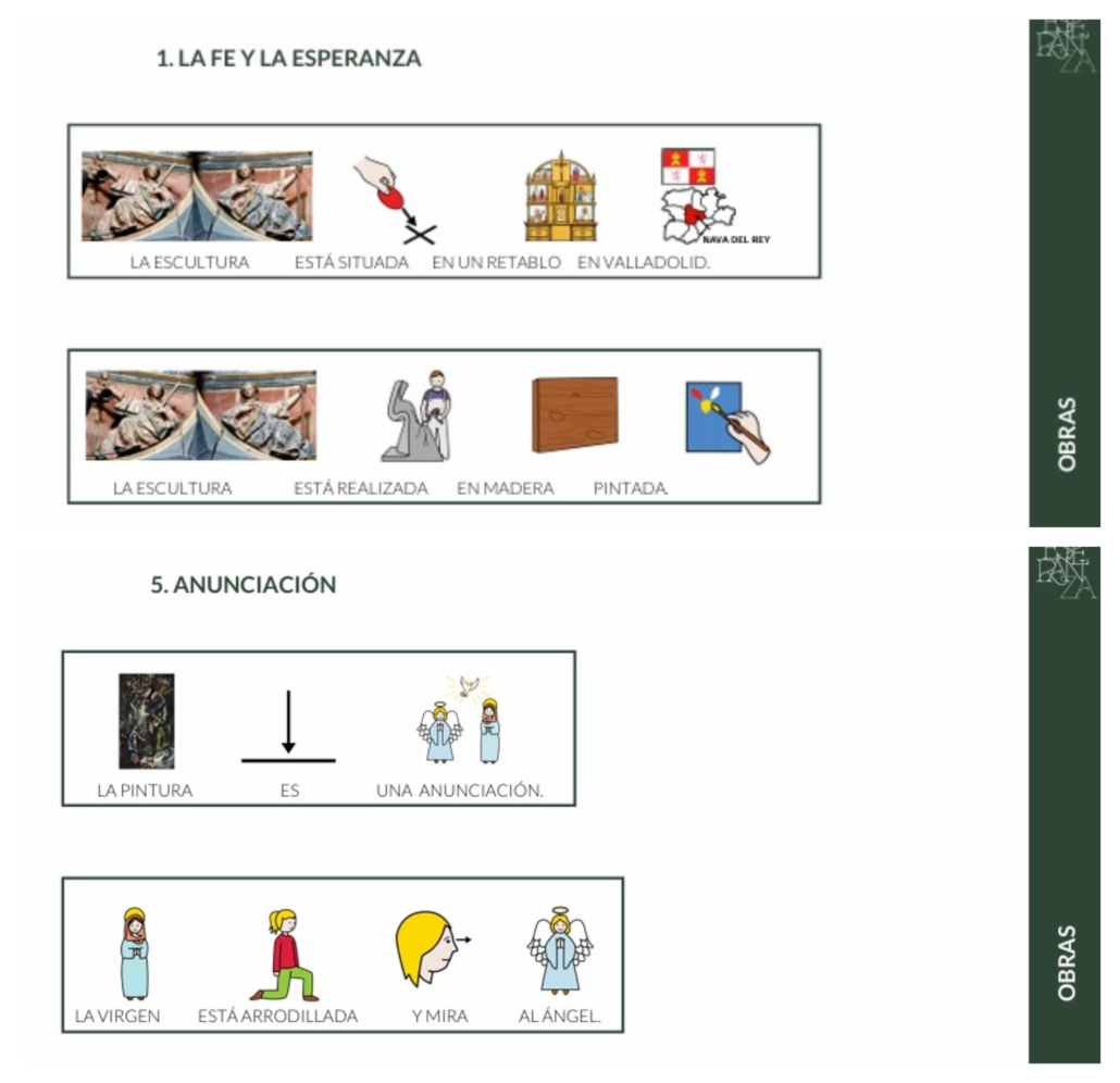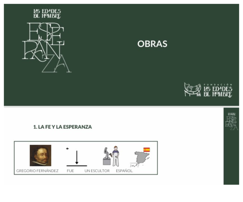 En este marco, y en la de la Exposición Esperanza, se ha creado una guía adaptada por parte de César Amador Isidro García y Blanca Flor Herrero Morán en la que se explican en Lectura Fácil (LF) con apoyo de pictogramas de ARASAAC, 6 de las obras más importantes de esta exposición: La Fe y la Esperanza, Maternidad, Cristo de las Injurias, Resurrección, Anunciación y Cristo en Majestad.