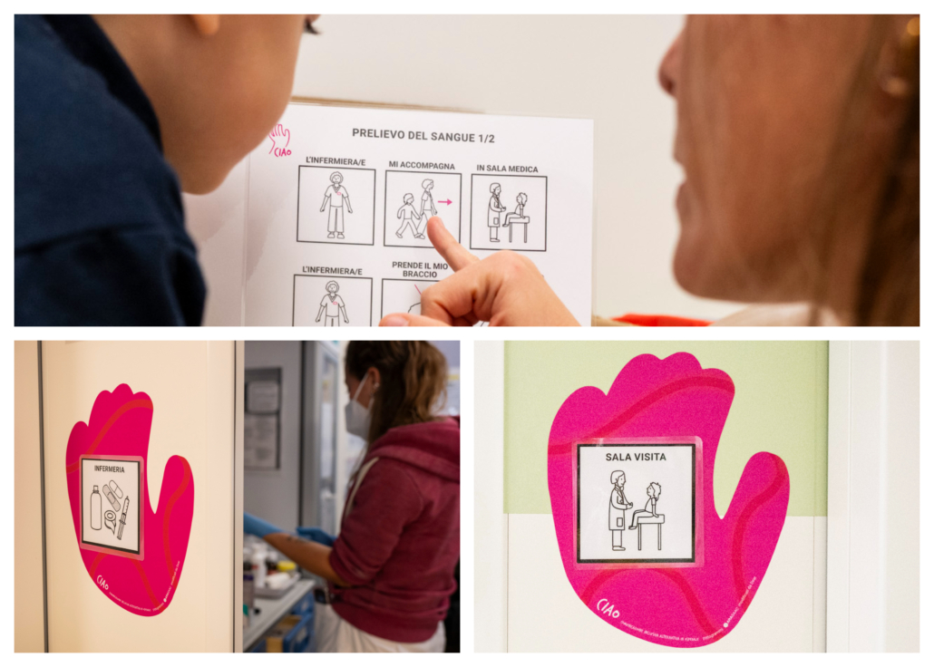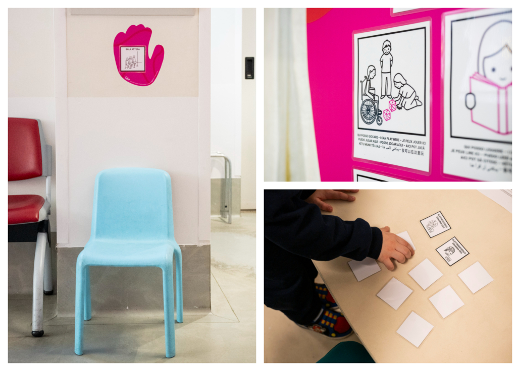 L’iniziativa si è basata su un ampio percorso di co-progettazione che ha coinvolto personale sanitario e famiglie, portando alla realizzazione di un sistema di supporti comunicativi costruiti a partire dalle esigenze emerse durante il processo. Il risultato è un insieme di strumenti visivi universali e inclusivi, basati sui pittogrammi ARASAAC e adattati al contesto specifico, che aiutano bambini e famiglie a familiarizzare con l’ambiente, comunicare con il personale sanitario e prepararsi a visite ed esami.